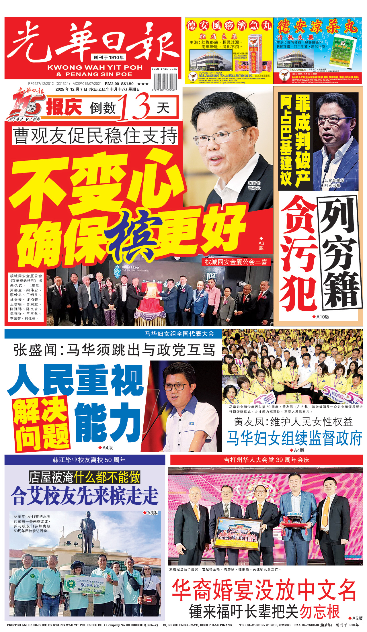 曹观友吁槟民勿“变脸和变心” 确保槟州未来发展会更好