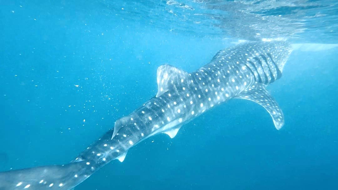 两头鲸鲨悠然自得从我眼前摇曳而过!即使回到了家,那半小时在海中与温柔巨兽畅游的震撼画面依然萦绕在脑海中。