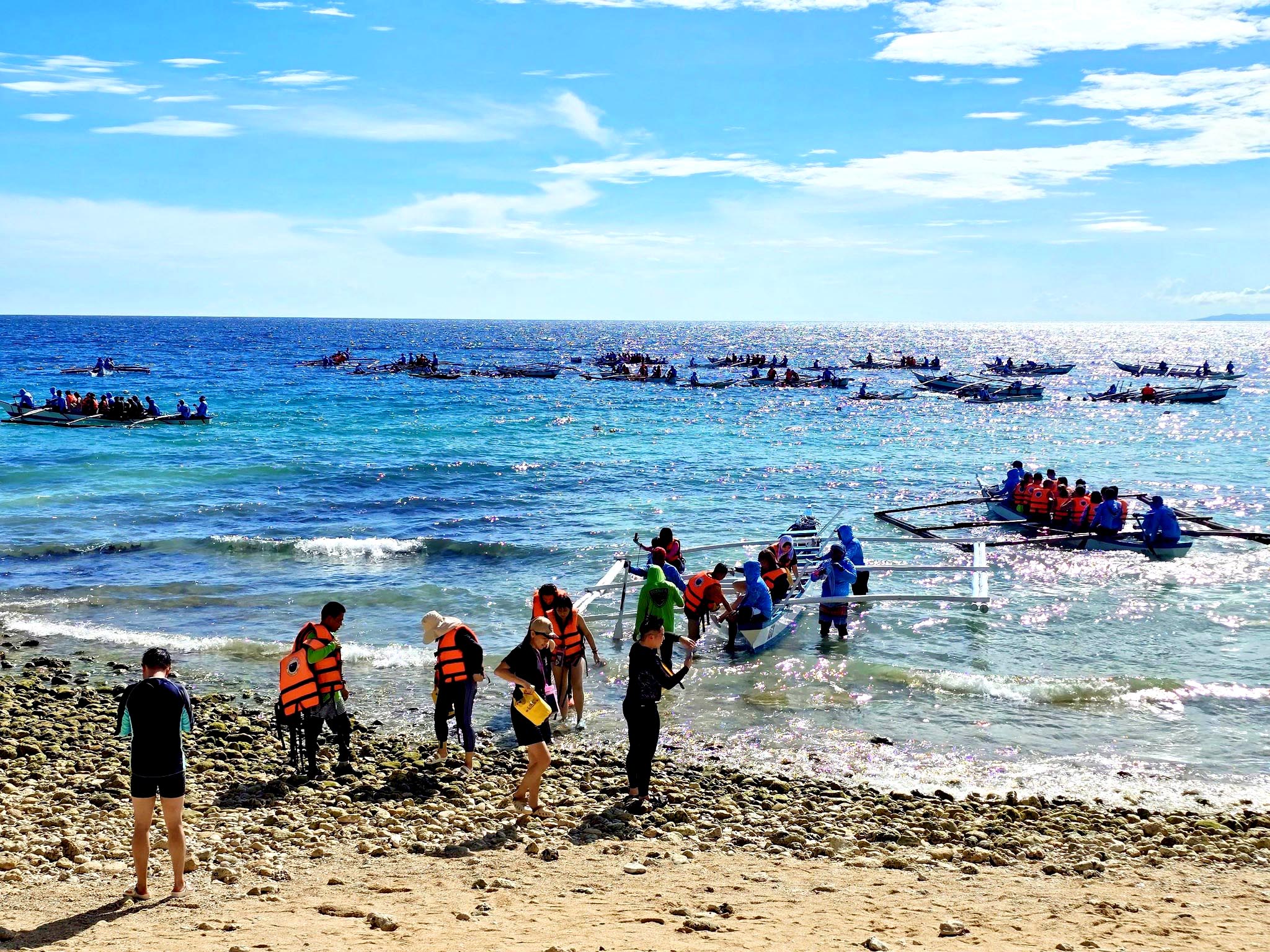 下了巴士走到海边,其实目测距离岸边约400米的海上有一大堆“螃蟹船”聚集,正是鲸鲨畅游之处,如此近的距离竟有鲸鲨,真的不可思议。