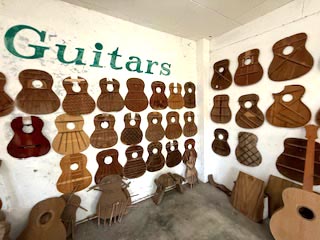 宿务有吉他之乡的美誉,这是其中一家手作及乌克丽丽的吉他工厂,位于麦坦岛。一踏入木厂,木香扑面,匠人们埋头雕磨面板,粘合,系绑弦的过程。游客可近距离观看制作过程,根据导游透露,这些手制的吉他价格从数千比索岛数万比索,取决于材料,一般上普通的吉他需要2至3天的时间制作,包括将面板、背板和侧板粘合后系绑音旋,昂贵的吉他就需约一个月的时间,这还不包括面板的原木所花费的4至6年的烘干时间,工厂内还有小小的礼品店供游客购买。