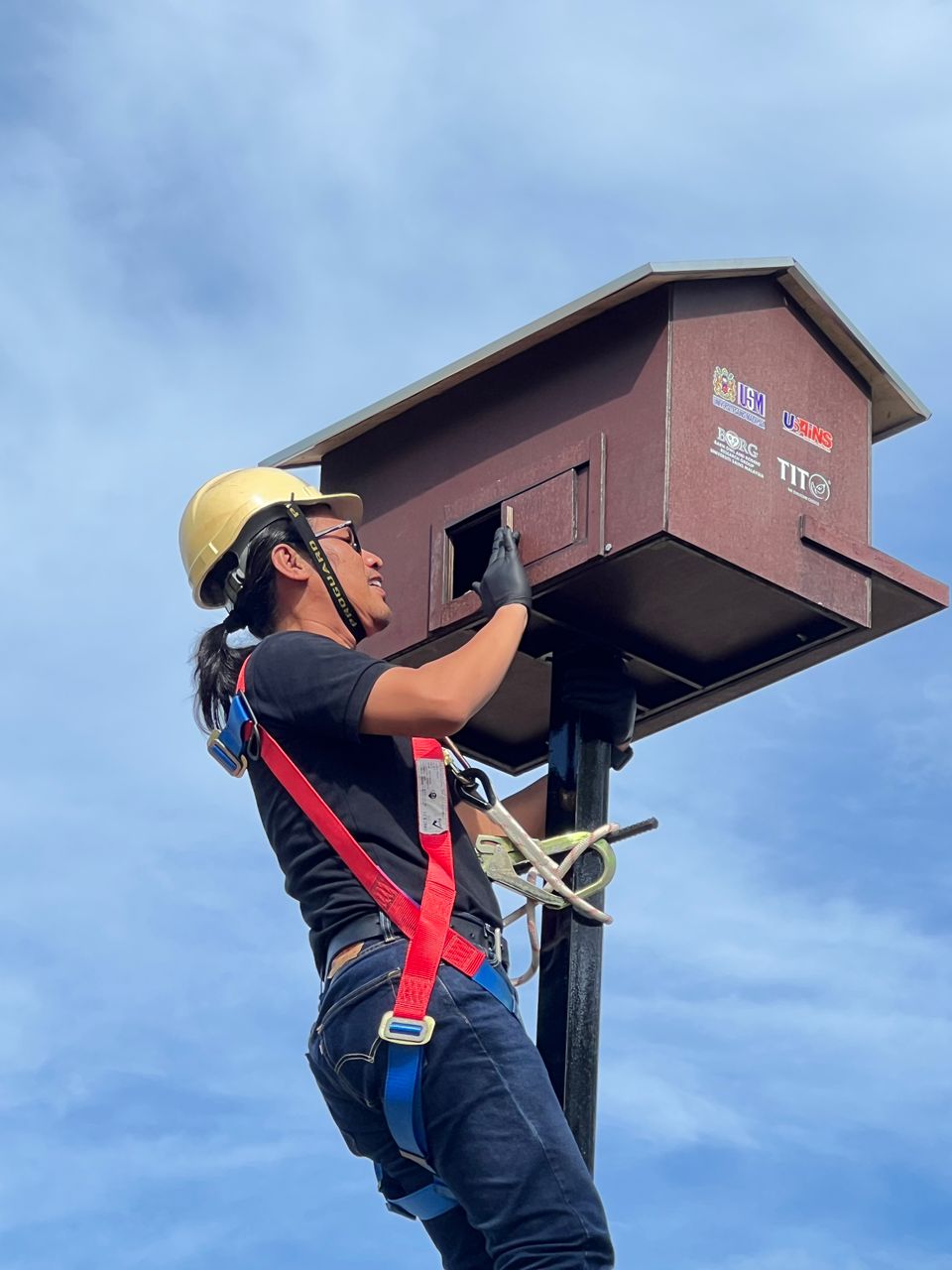 她说,通过理大生物科学的 BOG(Ban Awl & Golden Research Group)项目,在理大柏淡校园区域安装并管理了5个猫头鹰筑巢箱,过去约24个月、6个繁殖季里实现接近100%巢箱占用率,用于生态保育与生物性害虫控制。