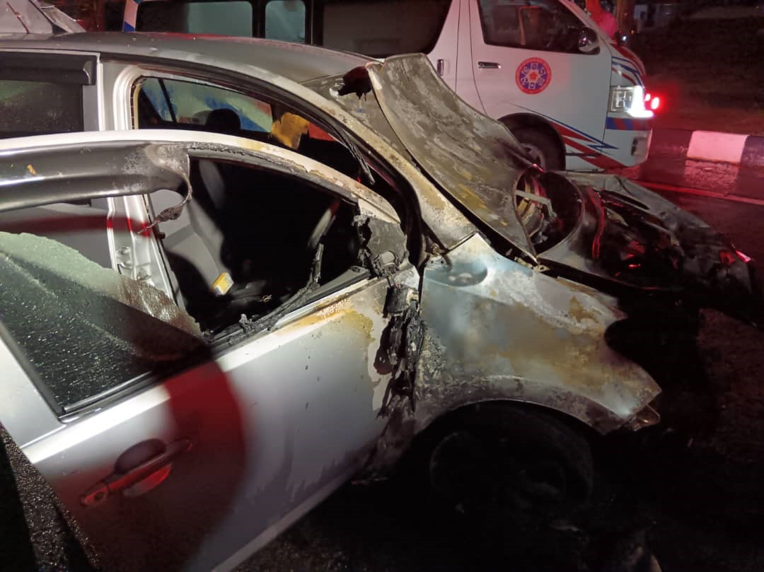 槟州消拯局在文告中表示,当局于晚上10时42分接到轿车着火的投报,并在10时54分到场进行救援。
