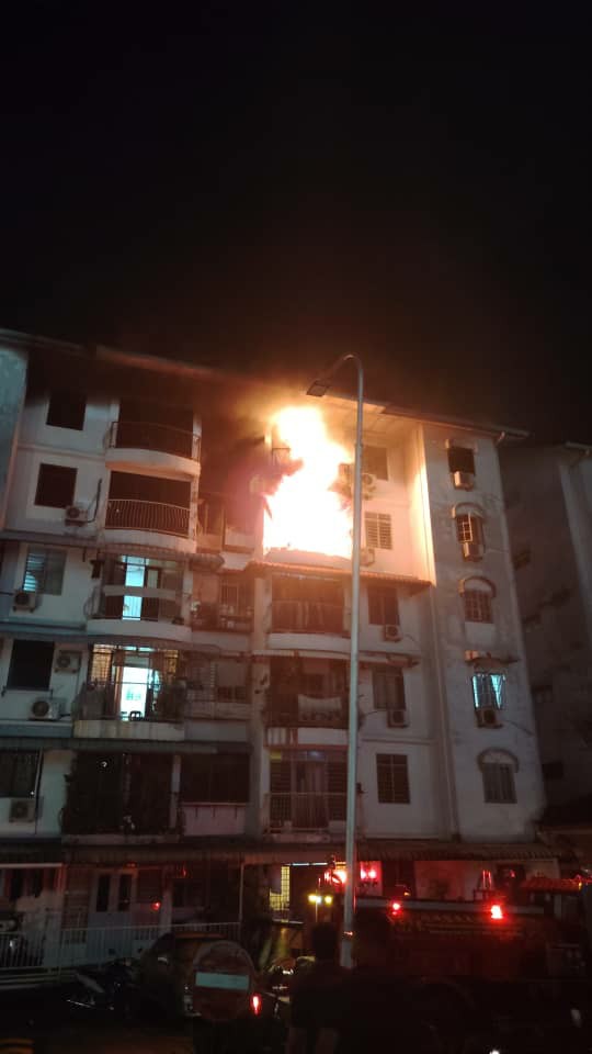 槟岛发林丹绒阁一座公寓5楼一单位周六(6日)晚失火,造成单位80%面积被烧毁,所幸消拯员及时到场将一名怀孕已3个月的孕妇及另一人救出!