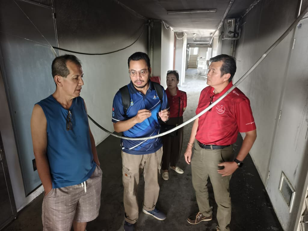 另一方面,瑟玛惹艾比乡村社区管理委员会主席王添福周日带领团队巡视失火的公寓单位,并慰问屋主家人,同时了解他们的需求,以协调及提供援助。
