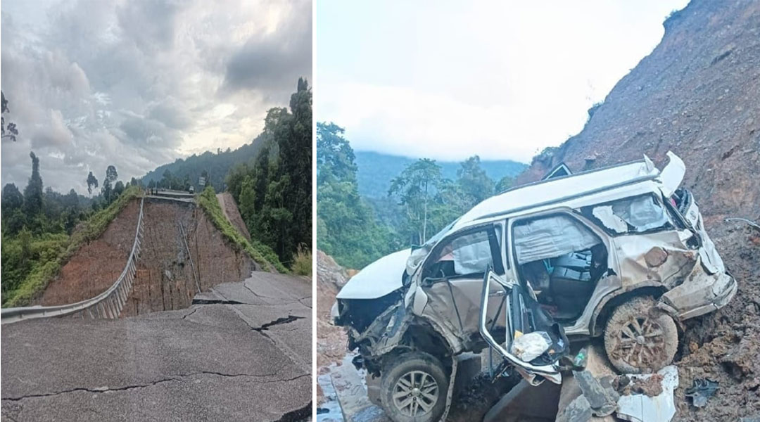 多用途休旅车(MPV)误闯因土崩而被封闭路段,结果失控坠落一个约200尺深山谷,一对准新人遭抛出车外命丧当场!