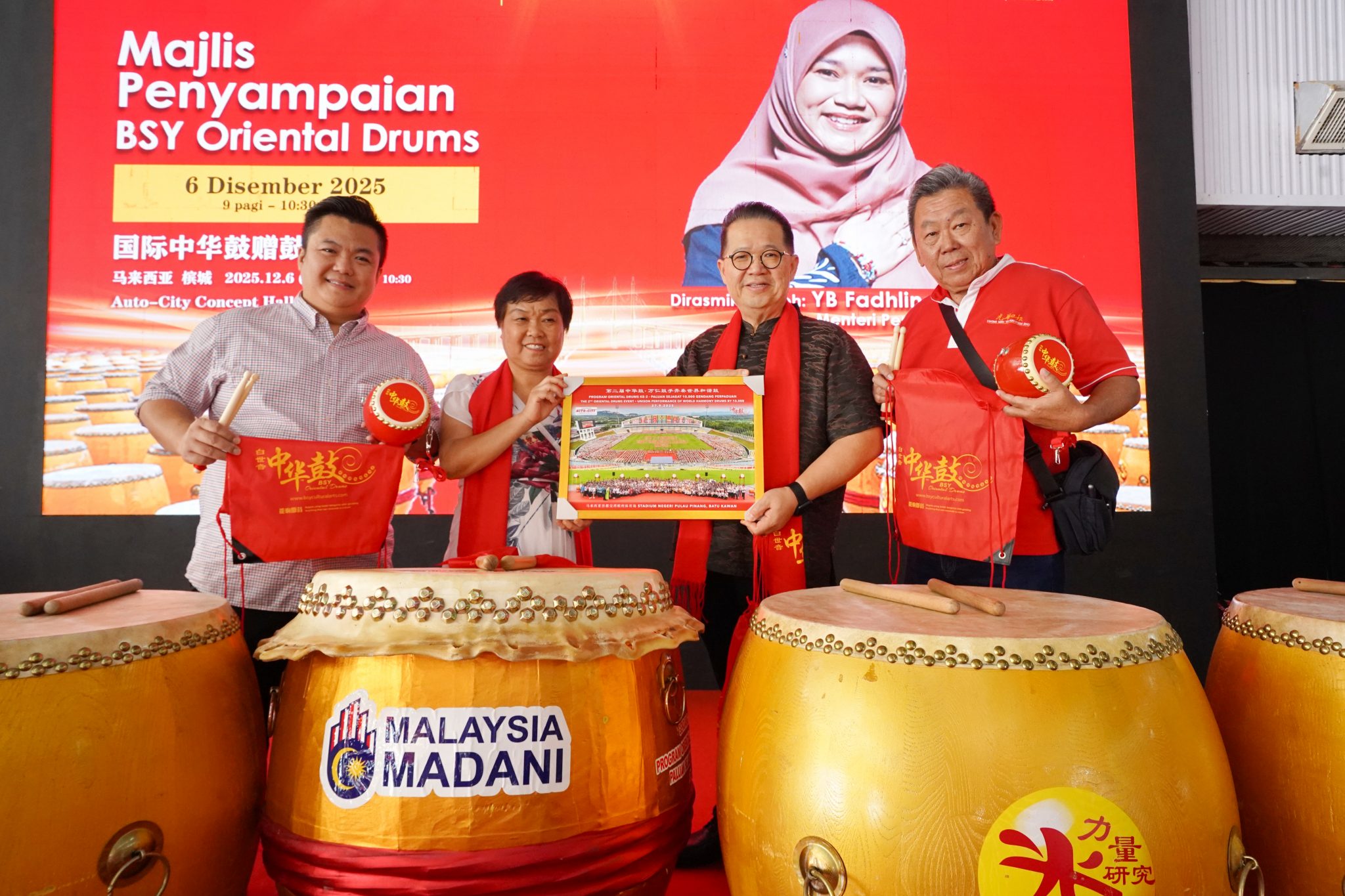 白世音文化艺术研究协会与国际中华鼓机构于本月6日举行捐赠仪式,向玻璃市、吉打、槟城、霹雳及吉兰丹5州的60所学校移交240面中华鼓,以支持校园鼓艺发展与传统文化传承。同时,也为学生播撒快乐正能量,促进学生在纪律、合作与团结精神方面的发展。