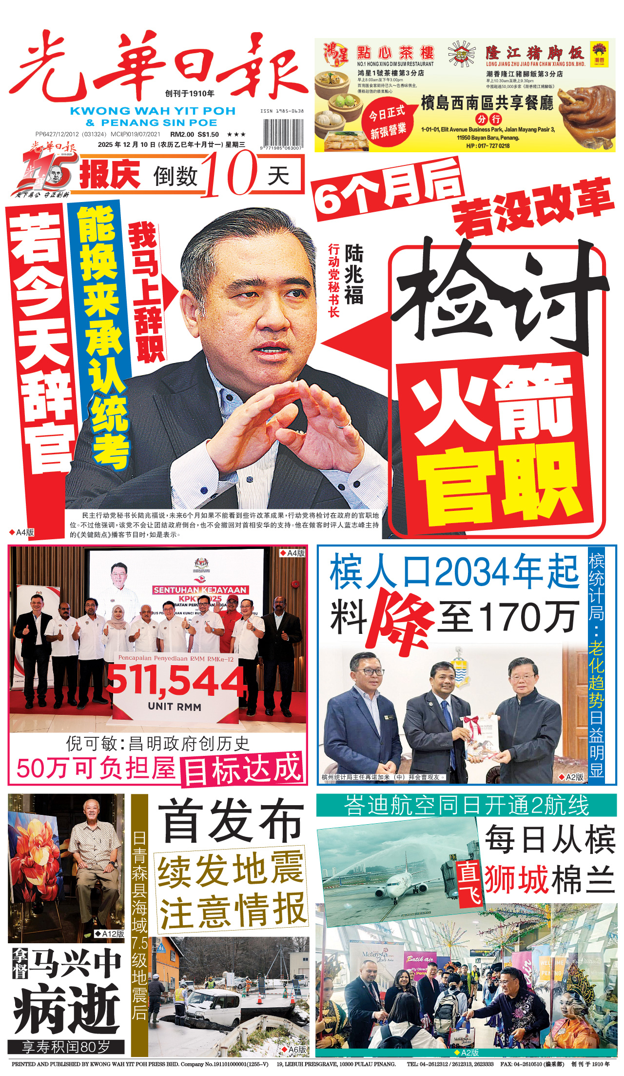 2034年槟人口逐降至170万 统计局:老龄化加剧