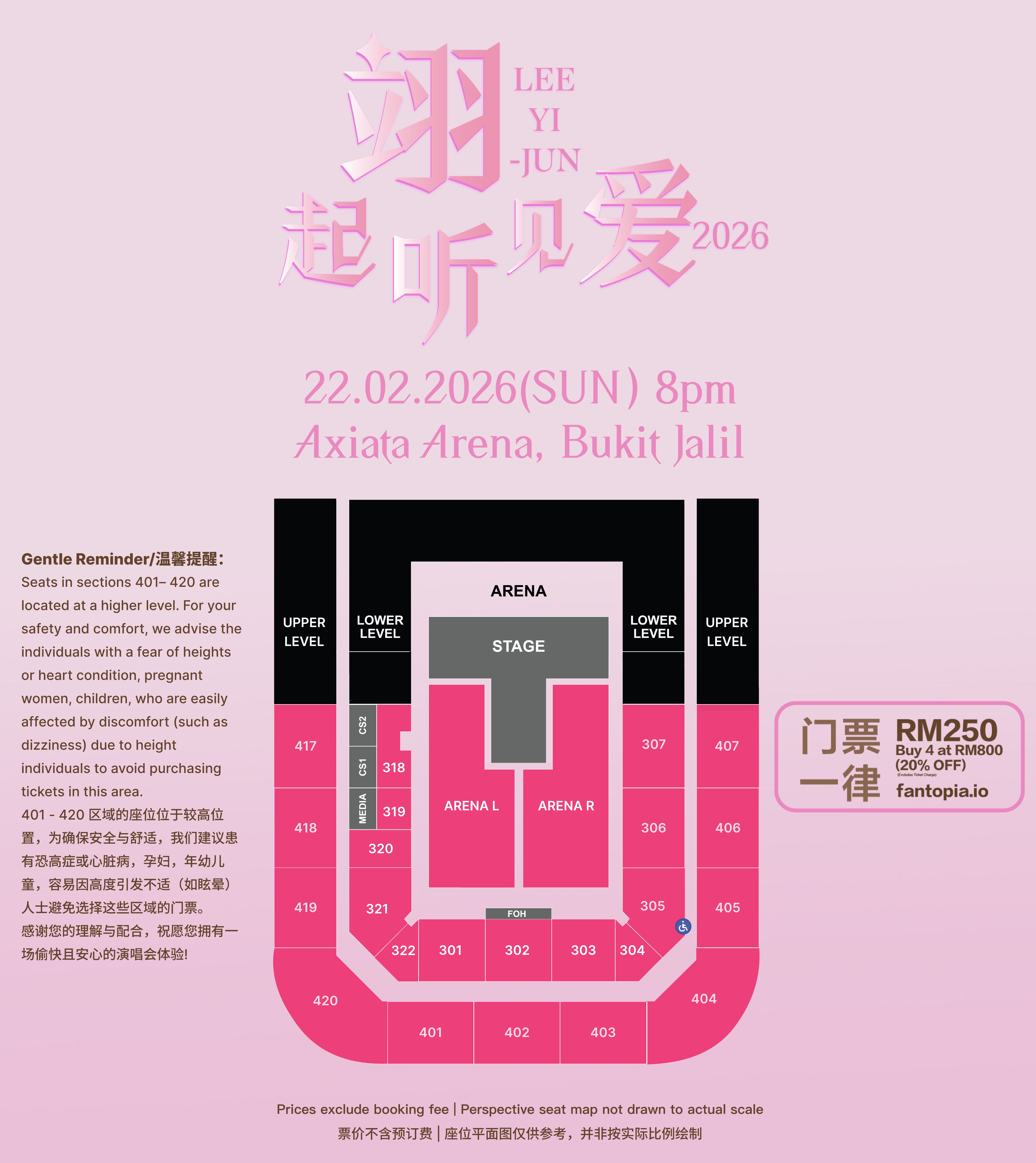 本次演唱会以“翊起听见爱”为主题,将以经典金曲串联情感,带领歌迷重温岁月中的温暖记忆,恰逢新春期间,演唱会将成为家人、朋友相聚共享的最佳选择。演唱会门票将在12月12日中午12时,通过Fantopia正式开售,统一票价为250令吉,并推出“4人同行”套票优惠,购买4张可享20%折扣。