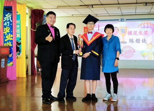 林嘉水颁奖予模范生陈楷捷,左1为李倩照。