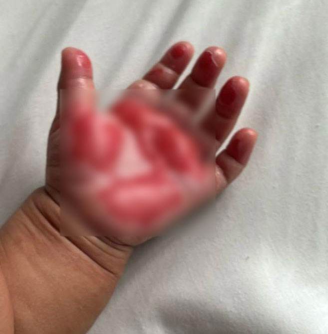 一名1岁1个月大的女婴因触碰被太阳晒得滚烫的不锈钢扶手,导致双手灼伤,所幸及时送院治疗,目前情况稳定。