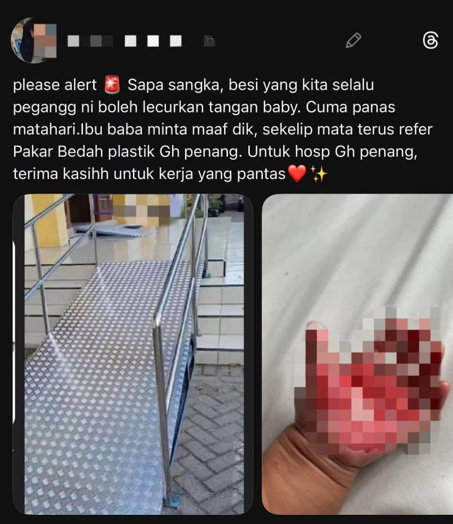 她也在社交平台“Threads”分享事件经过,并强调他们绝不可能伤害孩子;孩子是他们的“第一份礼物”,也是让他们成为“父母”的珍贵存在。意外发生后,他们深感愧疚,同时感激槟城中央医院团队及时且专业的治疗。