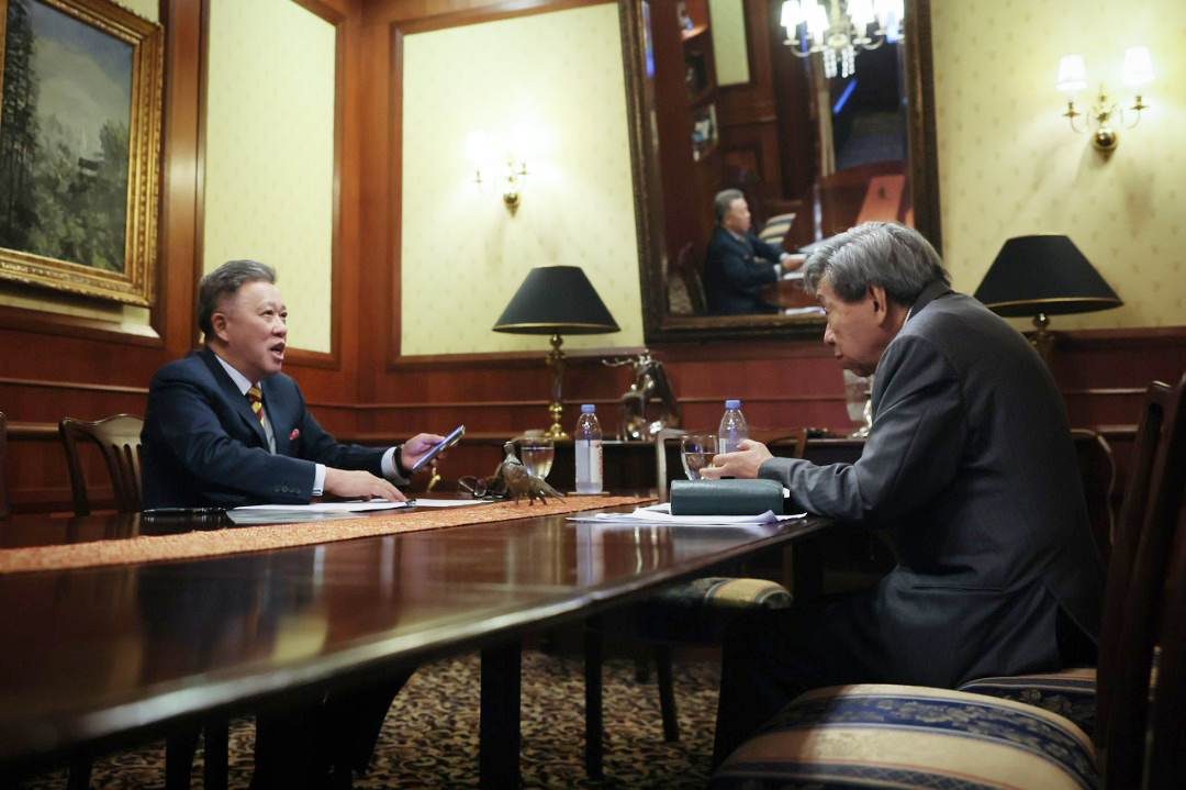 苏丹沙拉弗丁殿下(右起)配合80岁华诞接受黄振威专访。