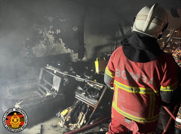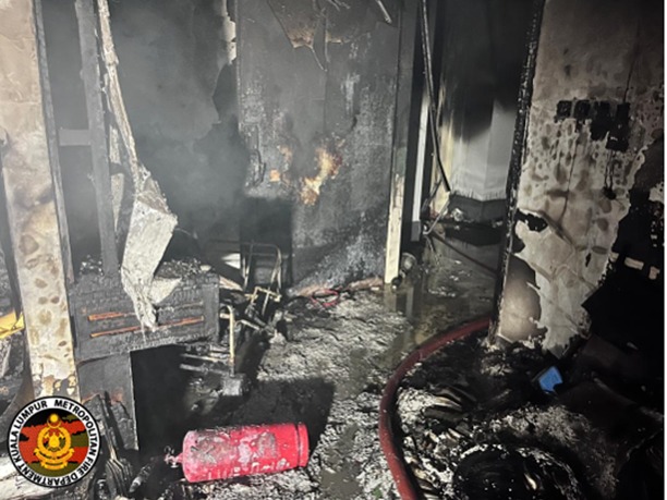 消防与拯救局于周三(10日)晚上8时46分接到这个在首都满家乐发生的事件后,从金地花园、曼加拉拉、冼都与敦依斯迈花园派人前往现场灌水。
