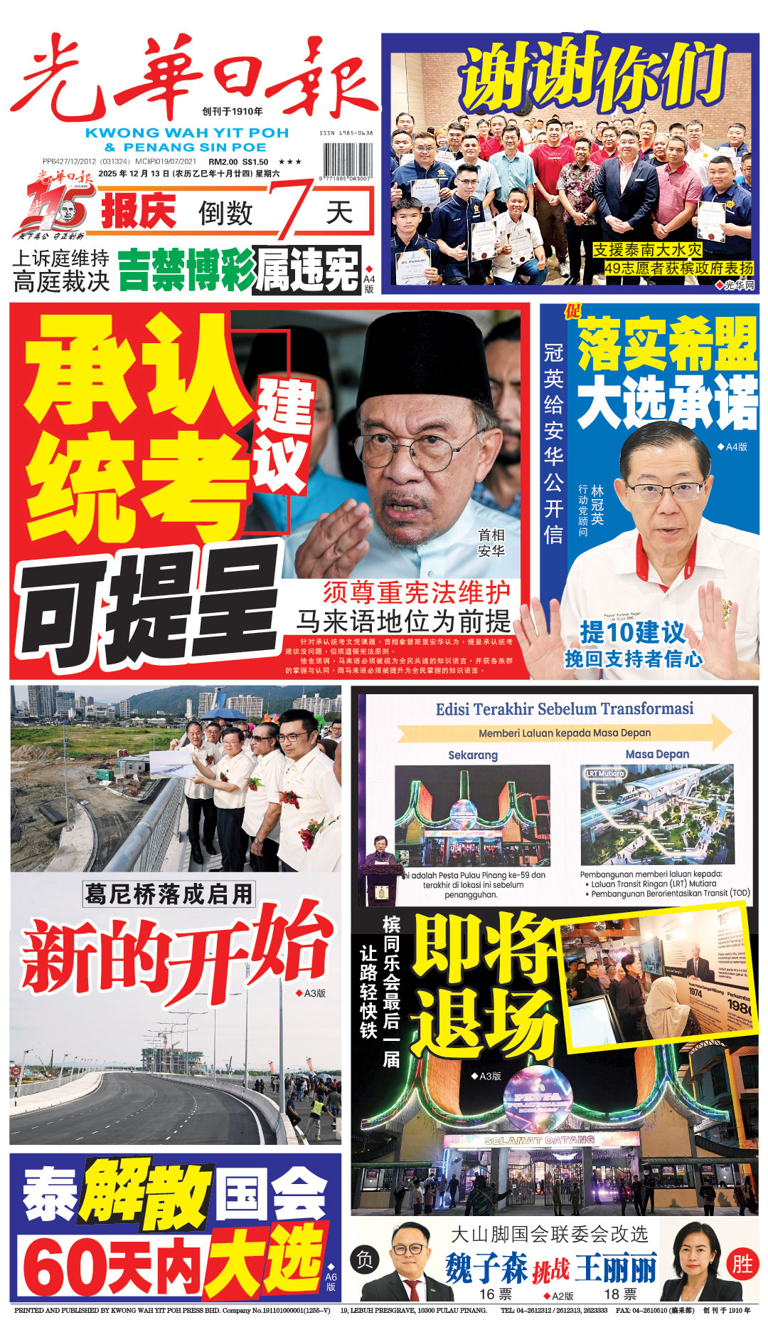 10待解课题包括兑现竞选承诺 林冠英:需挽回希盟支持者信心