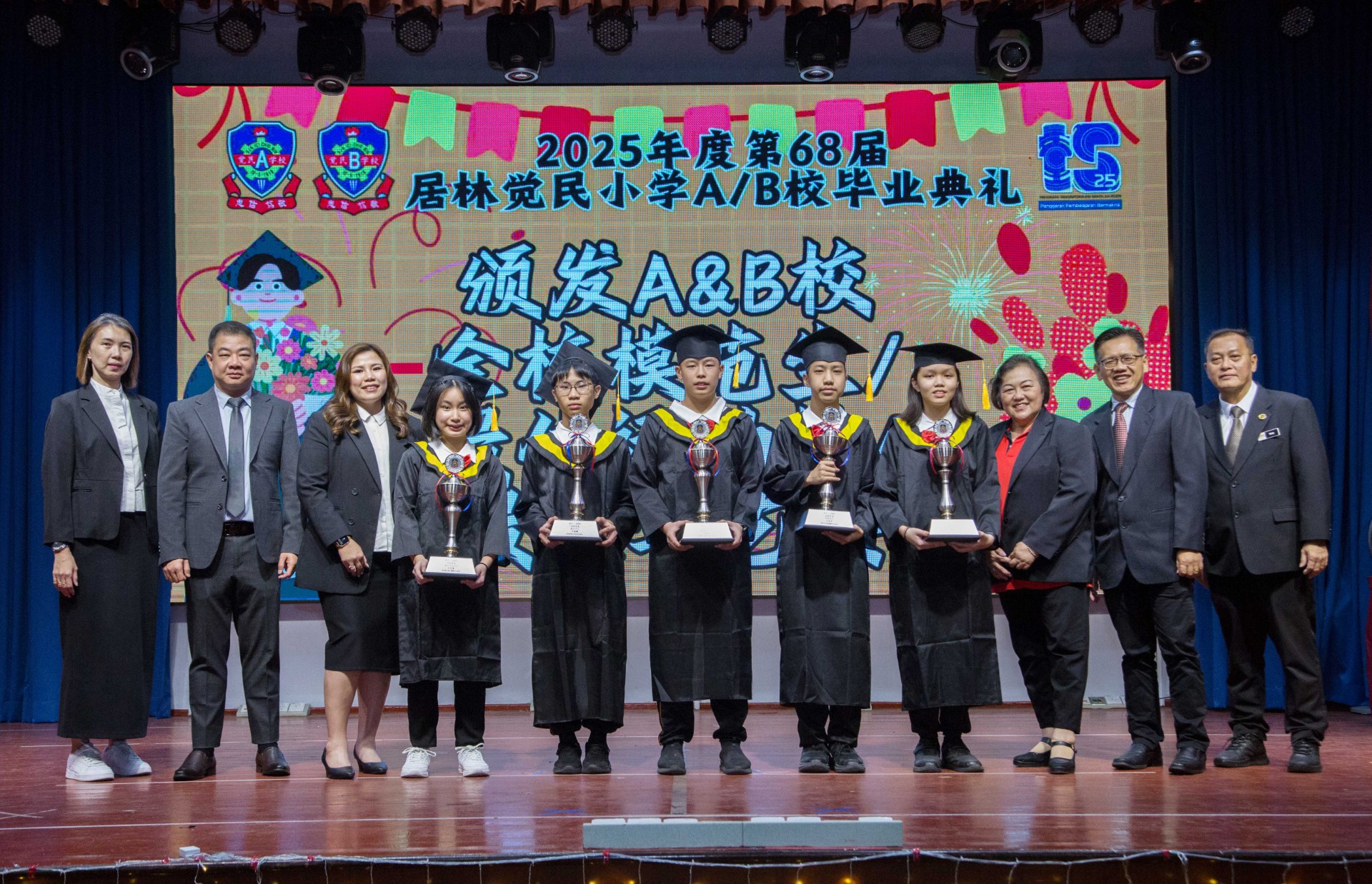 2025年度第68届居林觉民小学A/B校毕业典礼顺利举行。觉民小学A校的李昊轩和王文秀,以及B校的刘奕贤和杨于莹,分别荣获两校的男女模范生奖。