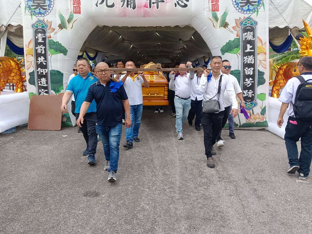 拿督马振平、拿督斯里陈炳良及一班友好抬棺陪着马兴中走最后一程。