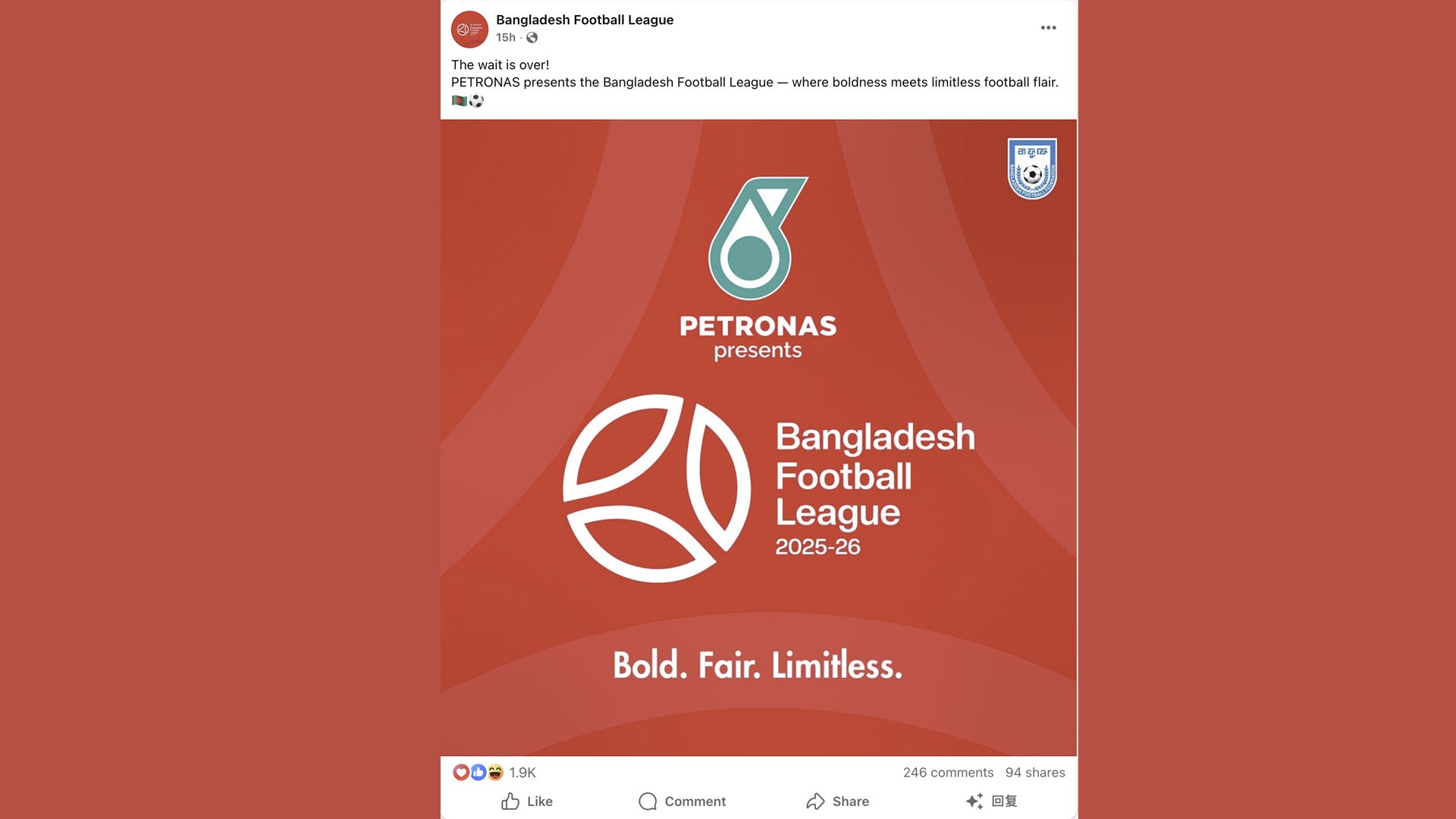 孟加拉足球联赛周日傍晚宣布国家石油公司(Petronas)为主要赞助商,引起了许多本地球迷和足球评论员的不满,不过国家石油公司在隔天立即否认,表示从未签署任何孟加拉足球联赛的赞助协议。
