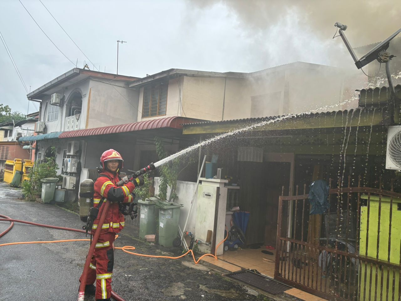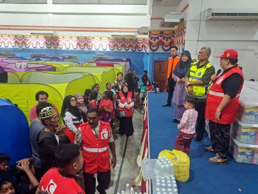 玻璃市加央银禧路周五(28日)仍一片积水,一对来自英国的年长游客夫妇受困当地酒店楼梯口,因铁拉闸门卡住无法打开,所幸恰逢3名巡警路经现场,听见呼救声后立即上前施救,成功将两人救出。