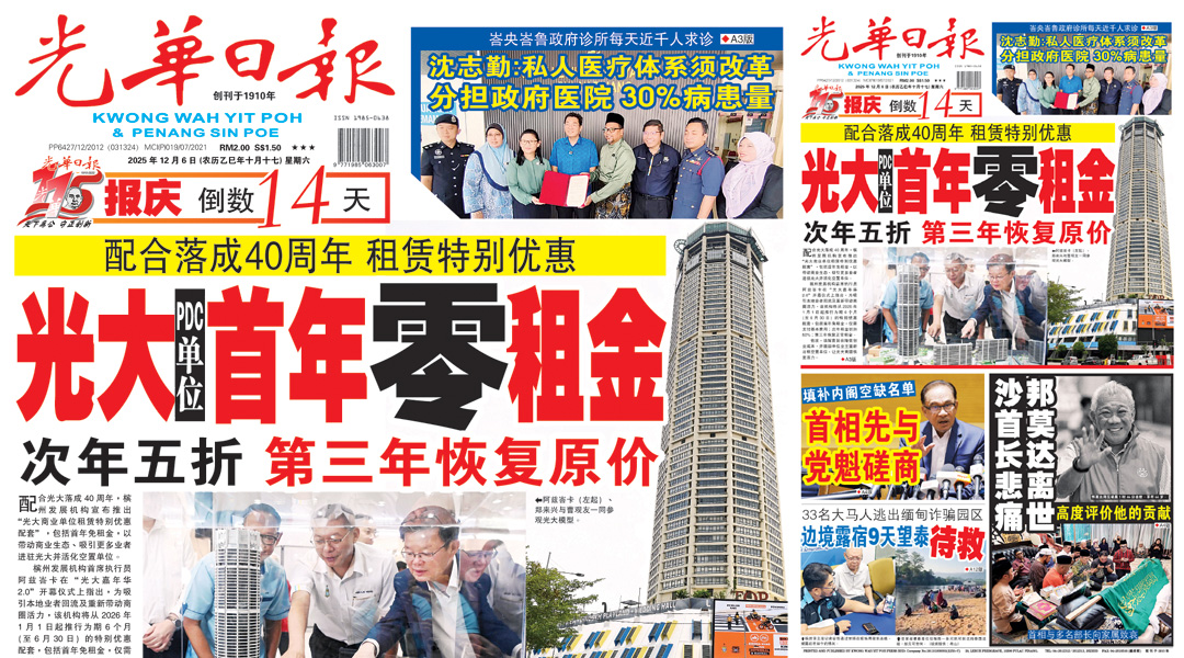 配合光大落成40周年,槟州发展机构宣布推出“光大商业单位租赁特别优惠配套”,包括首年免租金,以带动商业生态、吸引更多业者进驻光大并活化空置单位。