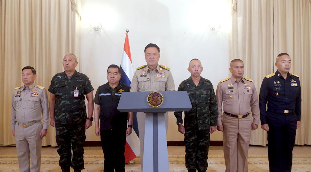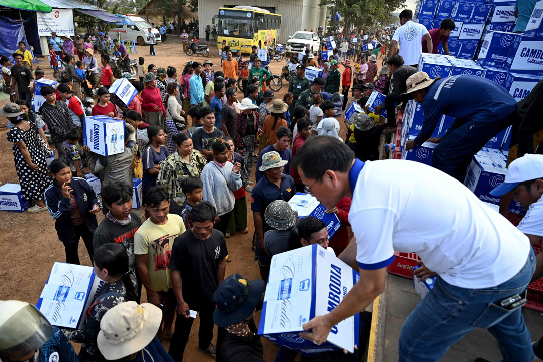 柬埔寨和泰国爆发边界冲突之际,泰国素林府乡村一所学校的混凝土掩体灰色墙壁上,一名男子正平静地绘制着色彩鲜艳的壁画,画面包括直升机、坦克、飘扬的国旗以及士兵抬着伤员……