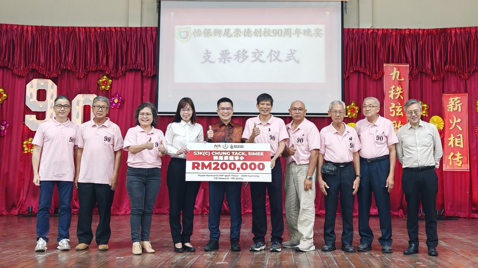 怡保狮尾崇德华小建校90周年《九秩弦歌,薪火相传》庆典在热闹盈门、嘉宾与校友云集的氛围中隆重举行,其中慈善拍卖更是全场焦点,筹获1万4888令吉充作建设特殊教育班课室经费。