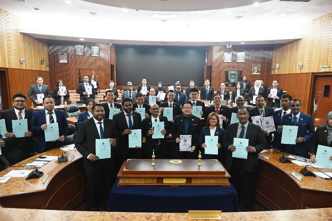 拉詹德兰(前左3)周一在市厅提呈明年度预算案获一致通过。