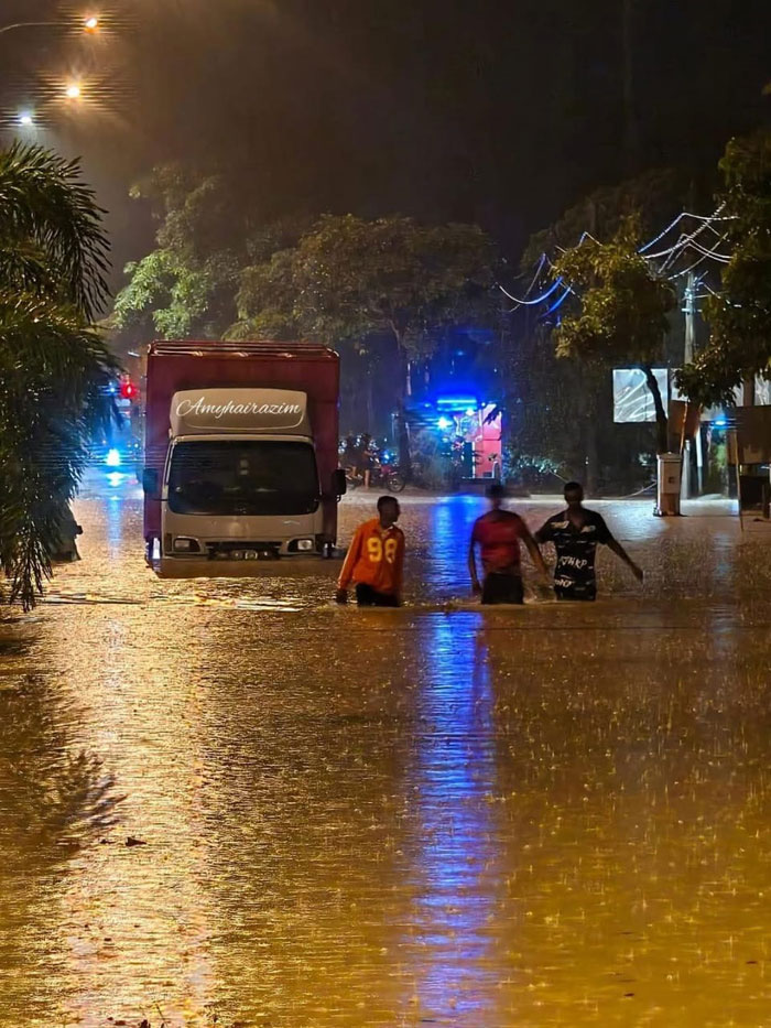 周五(3日)晚下起连绵大雨造成多个低洼地方淹水,截至周六(4日)早上,波各先那区有50户家庭撤离家园搬到疏散中心,受灾灾民200人。