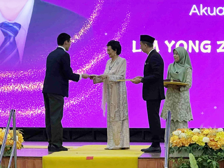 在2024年大马教育文凭考试(SPM)考获11A+的优秀生陈宣妍获苏丹端姑沙烈胡丁殿下亲自颁发金牌奖。