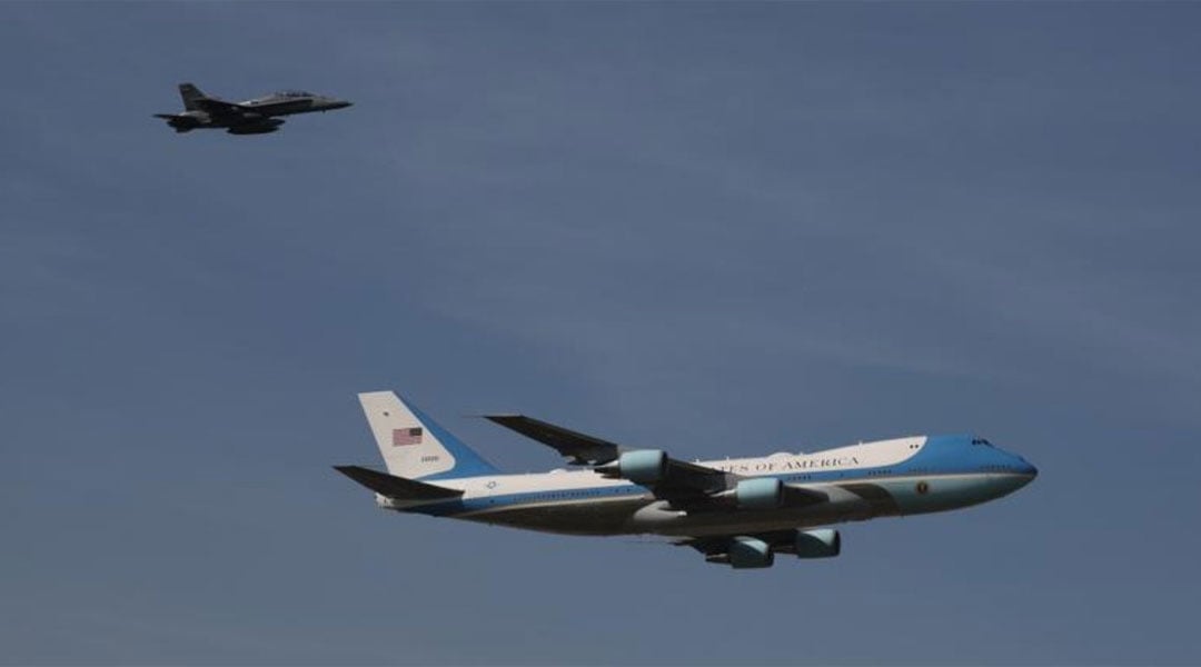 特朗普率代表团乘坐专机于周日(10月26日)早上9时54分左右,抵达吉隆坡国际机场(KLIA),首相安华亲自在大红花贵宾厅接机。