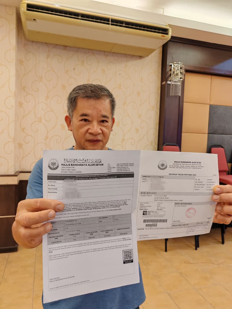 其住屋属于单层半独立式房屋,理应采用住宅物业的0.1%门牌税调整率。然而根据亚罗打市政厅的估价,却按商业产业的0.3%调整率计算,导致门牌税从每年483令吉飙升至4050令吉。