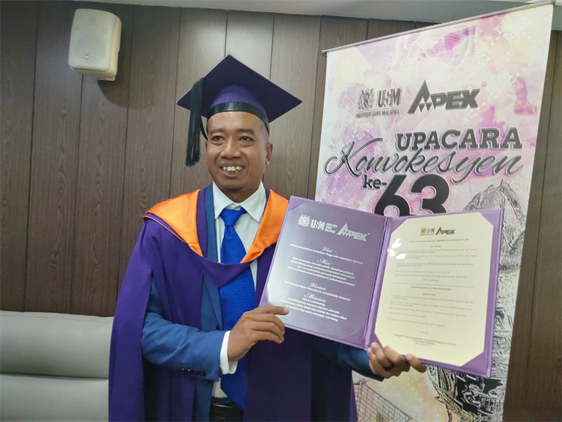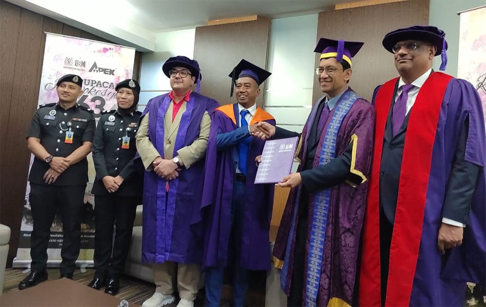 莫哈末凯鲁周三在马来西亚理科大学第63届毕业典礼上,领取了硕士学位。
