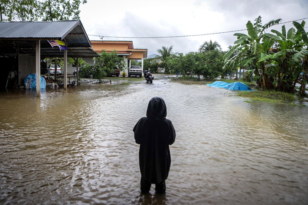 半岛长命雨不断,导致雪州大港渔村一夜间沦为泽国,海水通过沟渠倒灌入住宅区,导致不少居民受困深至腿部的积水中,当地消拯局紧急出动,连夜将居民疏散至安全地区。