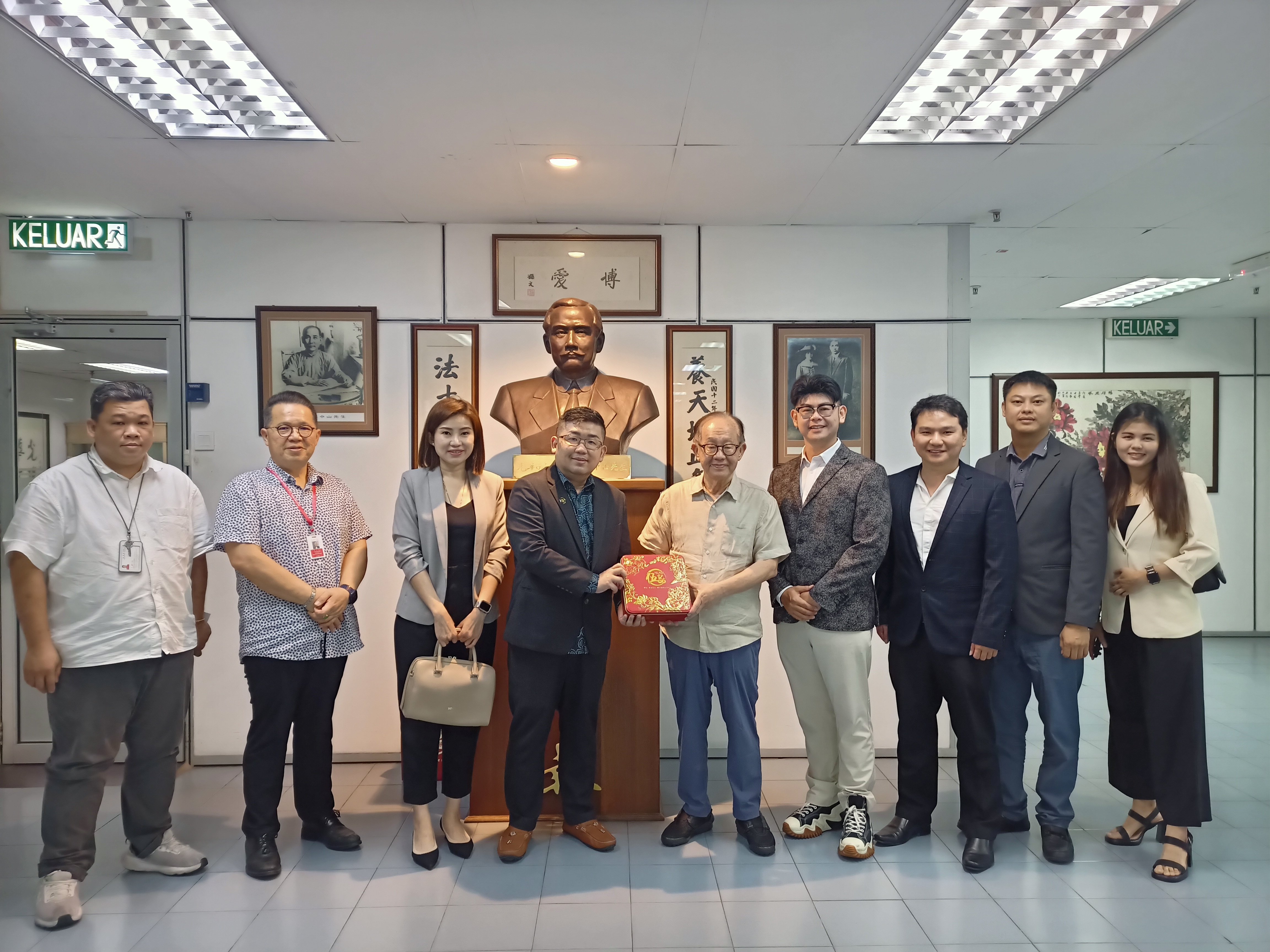 乙巳年中秋佳节即将来临,威省五大乡联青各团长周三下午,在威省客家公会青年团团长兼大山脚中秋嘉年华会工委会主席陈依兴(左3)带领下,拜访《光华日报》大山脚新闻中心,提早祝贺本报同仁中秋快乐;本报记者黄馨柔(右3)接待。