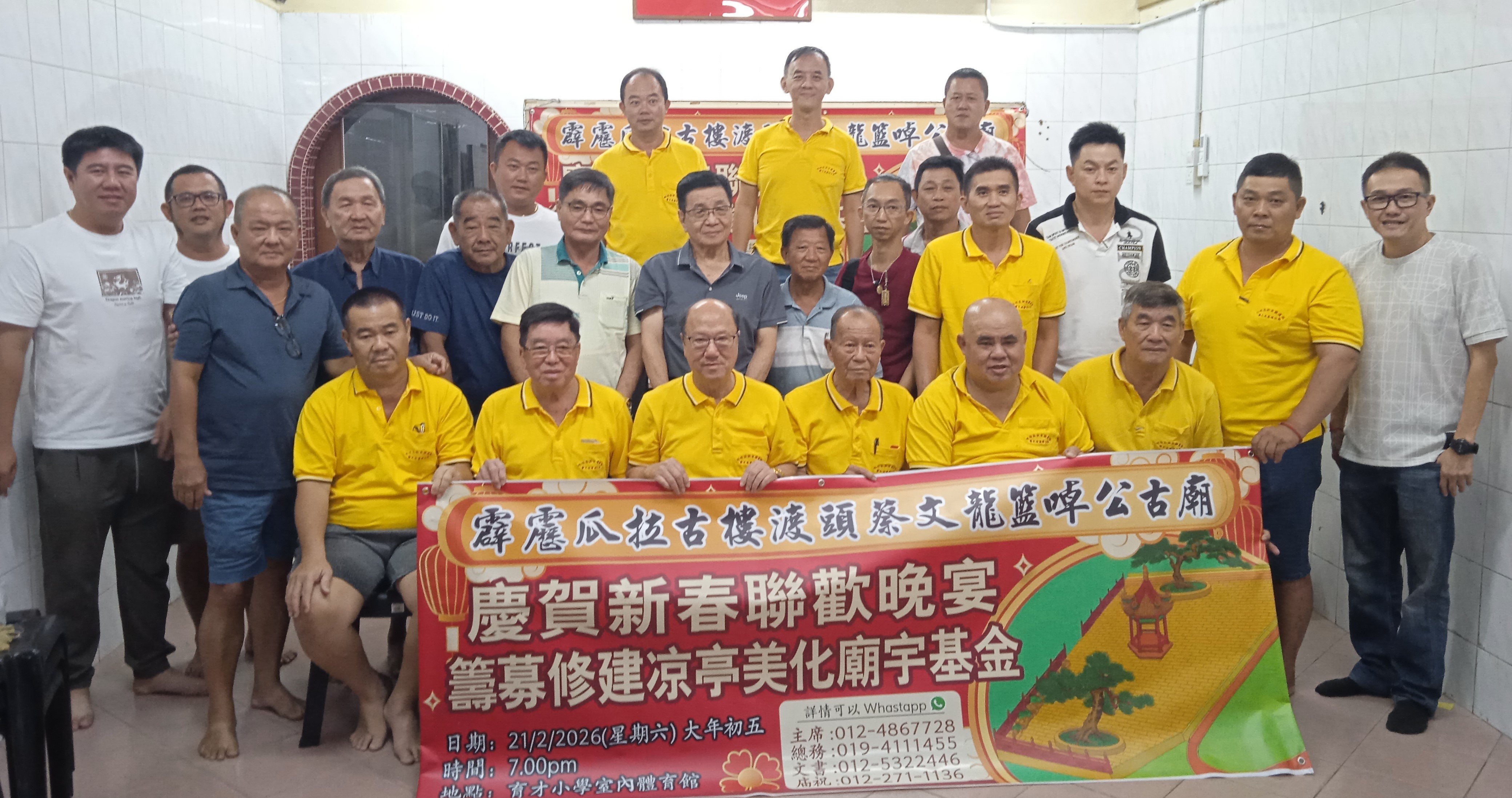 瓜拉古楼渡头蔡文龙篮啅公古庙理事会订于2026年2月21日(大年初五)星期六,晚上7时在当地育才小学室内体育馆举行庆贺新春联欢晚宴,以筹募修建凉亭美化庙宇基金。