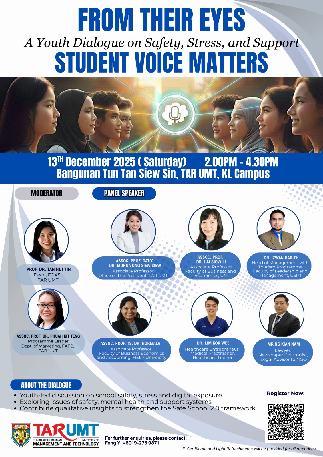 东姑阿都拉曼管理及工艺大学吉隆坡校园日前举办学术论坛,汇聚教育、心理学与公共卫生领域专家,聚焦马来西亚学生日益加剧的情绪困扰,并呼应“安全学校2.0”政策倡议。
