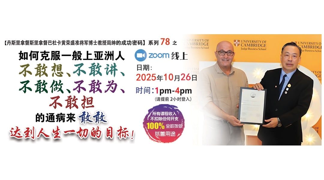 【丹斯里拿督斯里拿督巴杜卡黄荣盛准将军博士教授局绅成功密码系列78】 如何克服一般上亚洲人不敢想、不敢讲、不敢做、不敢为、不敢担的通病来敢敢达到人生一切的目标