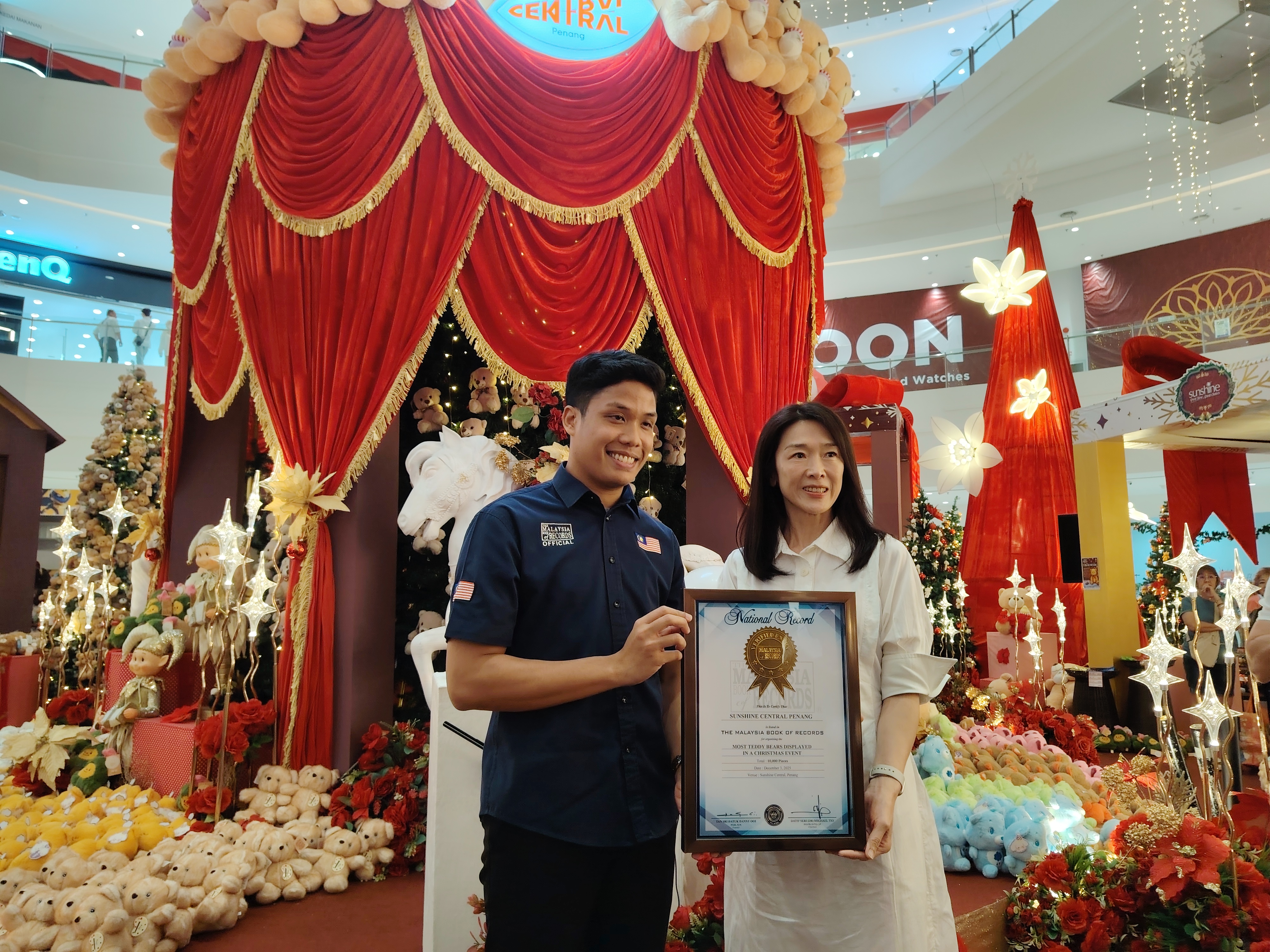阳光中心今年直接把圣诞气氛推到最满,一口气摆上10,000只缤纷泰迪熊,成功拿下马来西亚纪录大全!现场还推出“爱心泰迪熊”领养计划,带熊回家还能做公益,玩乐与温暖一次拥有。快来一起沉浸熊熊圣诞节的欢乐氛围!
