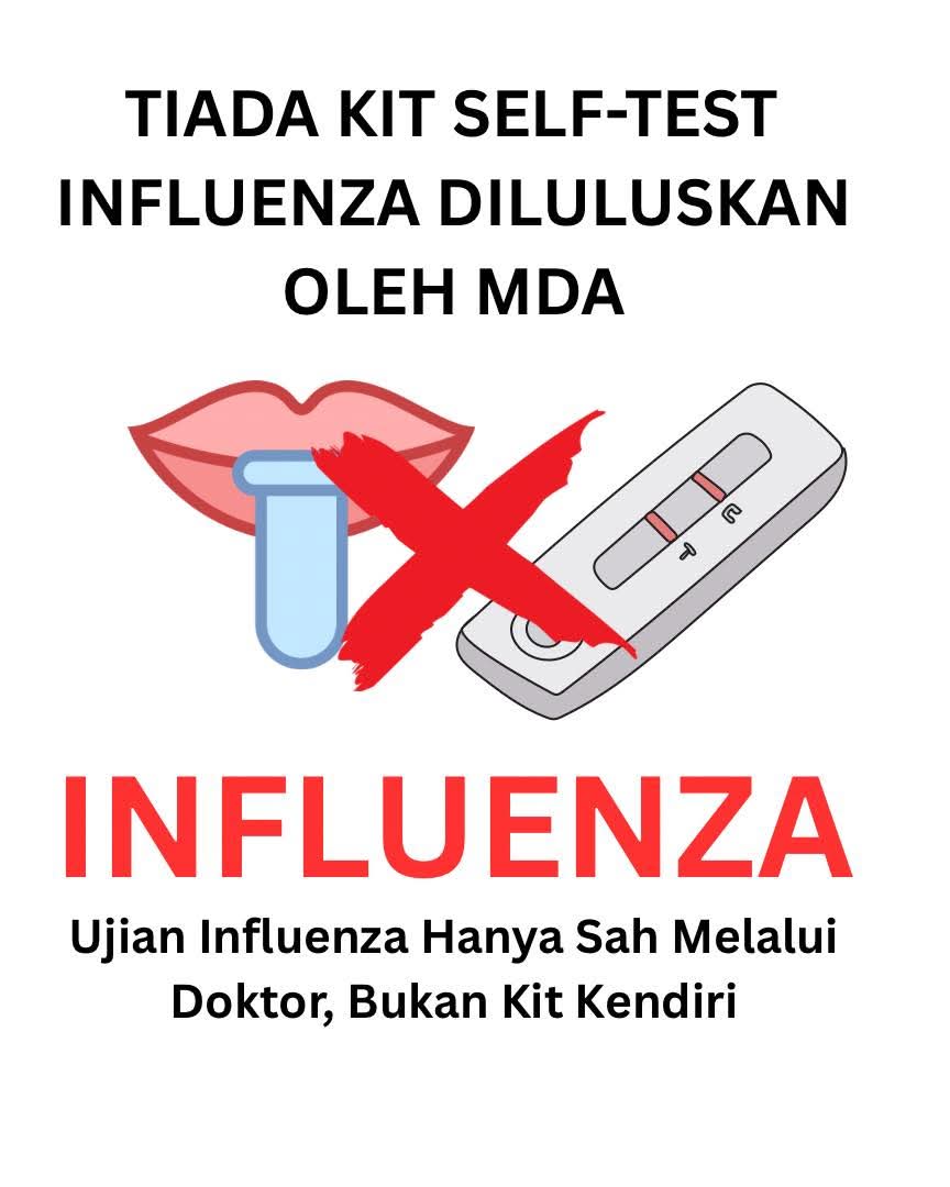 大马公共卫生(Public Health Malaysia)提醒民众,目前尚无由马来西亚医疗器械管理局(MDA)批准,供民众使用的流感自检试剂盒。