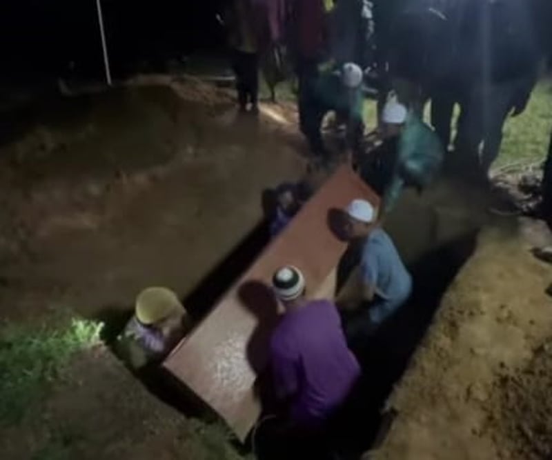 震惊全国的柔府母女双尸案,两名死者51岁的莎莉雅与其11岁女儿诺阿菲丽娜的遗体,经周日(10月19日)晚上在家乡吉打锡仁那里清真寺墓园同穴安葬……